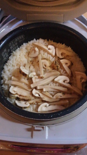 松茸ご飯にしました。でも臭いがない。シメジも入れたほうがよかったかなぁ(笑)