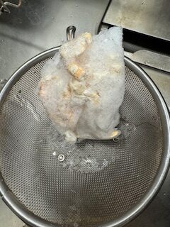 その中に、冷凍庫で眠っていた化石化したシーフードを使った💦